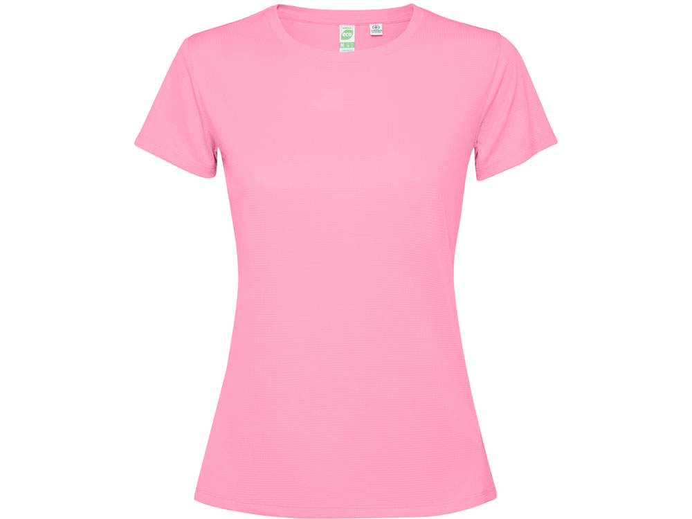 Женская футболка с коротким рукавом из технологичного полотна. Отстрочки в тон. Спинка с удлинением. Боковые швы со смещением вперед.