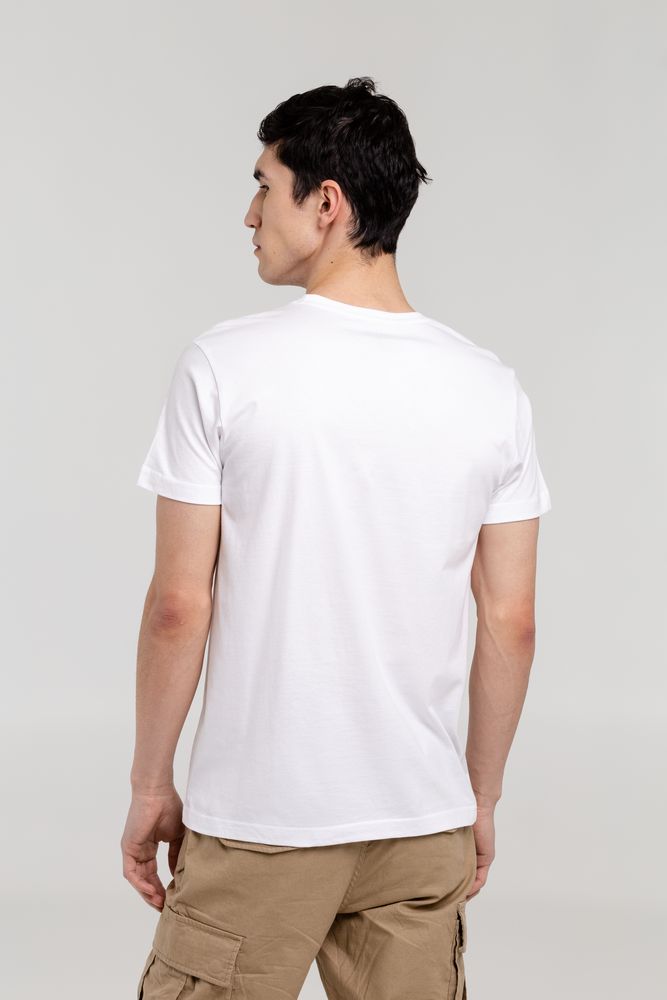 Мужская футболка с круглым вырезом. Двухслойная резинка предохраняет воротник от деформации после стирки.