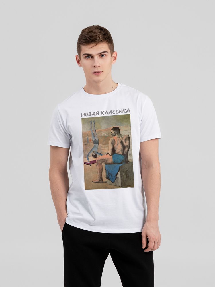 Некоторые современные вещи настолько прочно вошли в наш быт, что, кажется, они существовали всегда. А может так и было? Коллекция «Новая классика» — это попытка разглядеть будущее в прошлом!Классическая кроеная футболка унисекс из гребенного хлопка. Благодаря тонким и длинным волокнам хлопка ткань футболки отличается гладкостью, ровностью и прочностью, отлично сохраняет форму, не деформируются и не выцветает при стирке. Горловина выполнена резинкой 1×1. Слегка приталенный силуэт.
