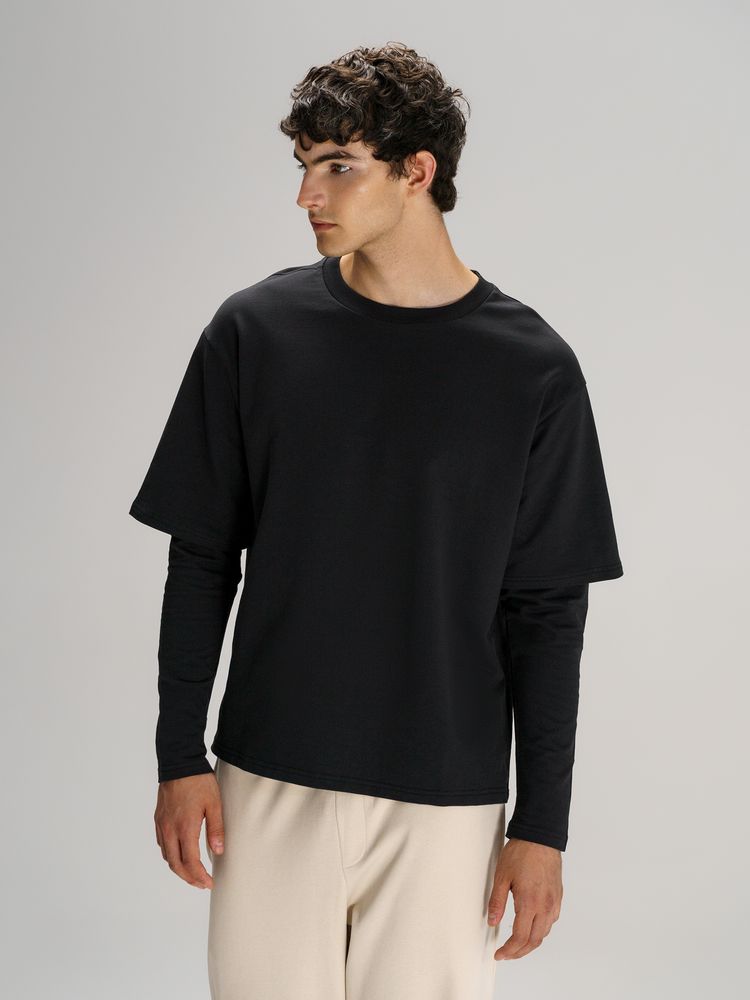 Футболка оверсайз с двойным рукавом Kosmos, черная