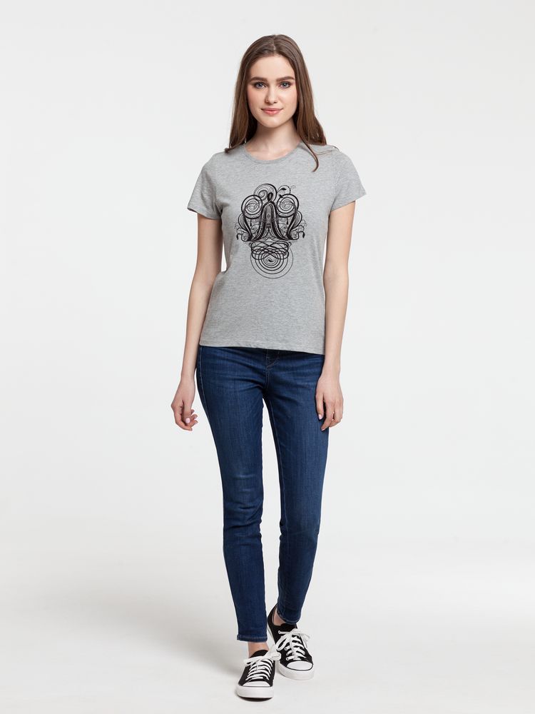 Кроеная футболка приталенного силуэта с круглым воротом.