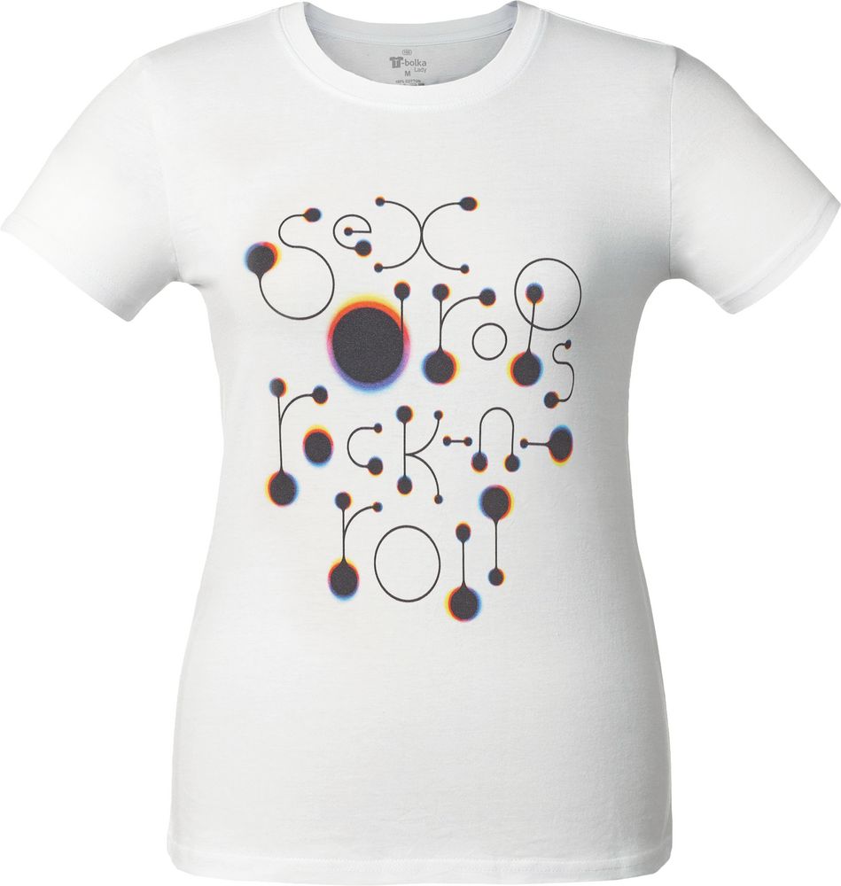 «Принтэссенция» поддерживает здоровый образ жизни: рок-н-роллить вполне можно и без запрещенных веществ! А кайф и радость жизни пусть передаются воздушно-капельным путем.Кроеная женская футболка с круглым воротом-резинкой (рибана 1×1 с лайкрой).