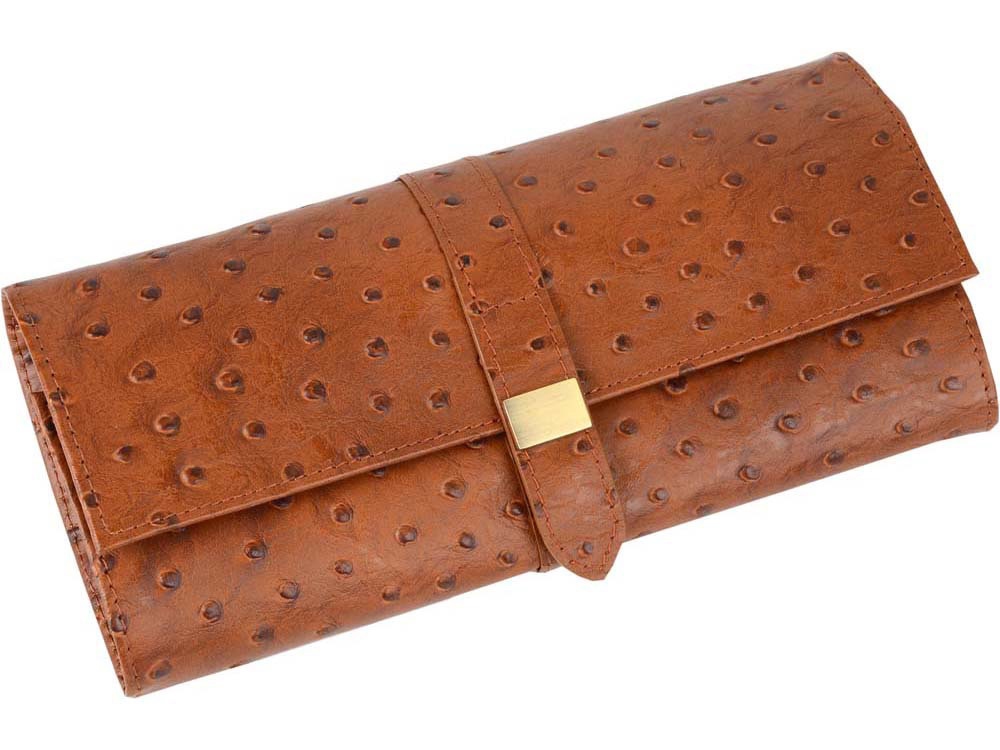 Стильный и удобный футляр из натуральной кожи для драгоценностей поможет прочно закрепить ювелирные изделия и бережно их сохранить даже во время перевозки. Удобно брать с собой в путешествие.
