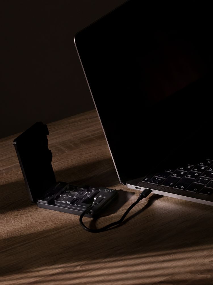 Multitask — компактный органайзер с ключом для слота SIM-карты, кабелем с разъемами USB Type-C—Type-C и переходником USB Type-A. Дизайн футляра выполнен в виде карты памяти, что делает его отличным подарком для сотрудников IT-компаний и любителей современных гаджетов.