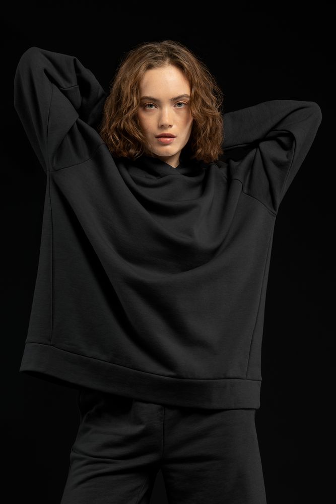 Худи унисекс свободной посадки с рукавами реглан и капюшоном.