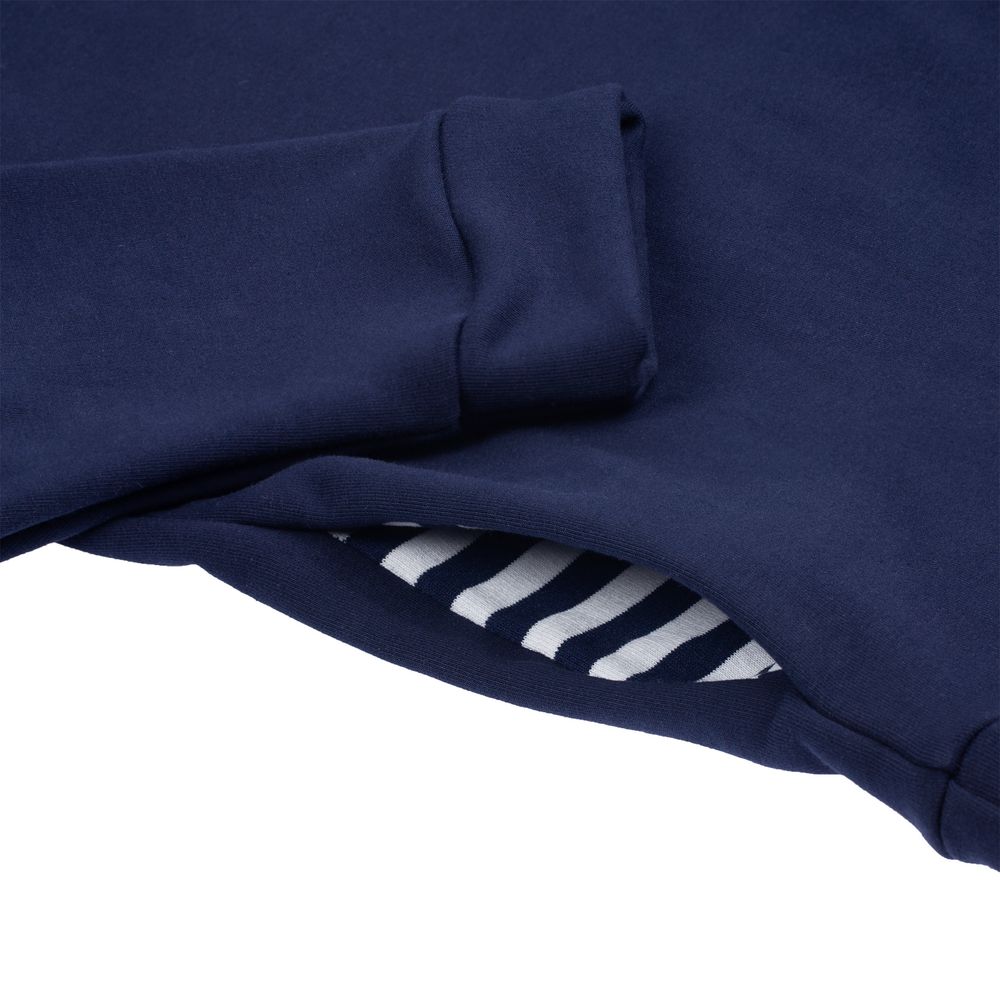 Морской стиль в одежде — это всегда особая атмосфера, пропитанная соленым воздухом, легким бризом и шумом волн. Худи Seamark подарит ощущение свободы и легкости. Его с удовольствием можно носить как в городе, так и во время отдыха на яхте, путешествия на круизном лайнере или плавания на парусной регате. Дополнительный шарм изделию придают хлопковый канат для регулировки капюшона и полосатая подкладка на капюшоне и в карманах.