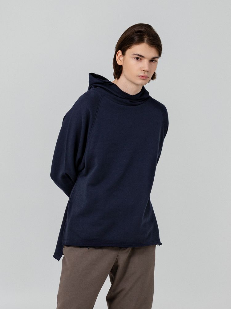 Худи унисекс свободного кроя с рукавами реглан. Внутренняя сторона без начеса.