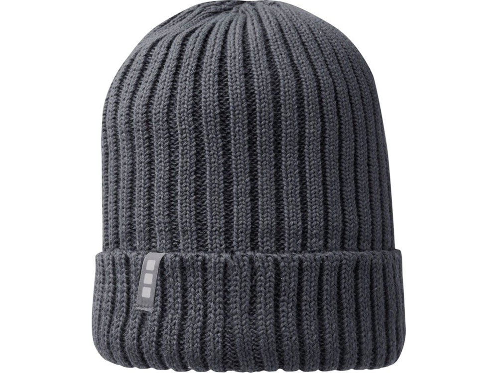 Однослойная шапка с двойным отворотом связана рибом 2х2 7 класса из 100% органического хлопка. Фирменная этикетка в виде петли.