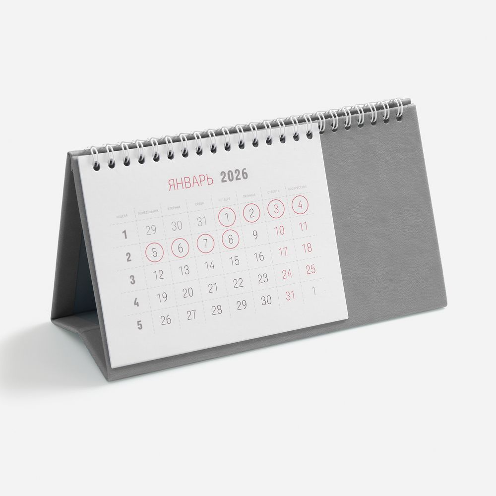 Настольный, перекидной календарь-домик выполнен из материала Latte, серый СС.
