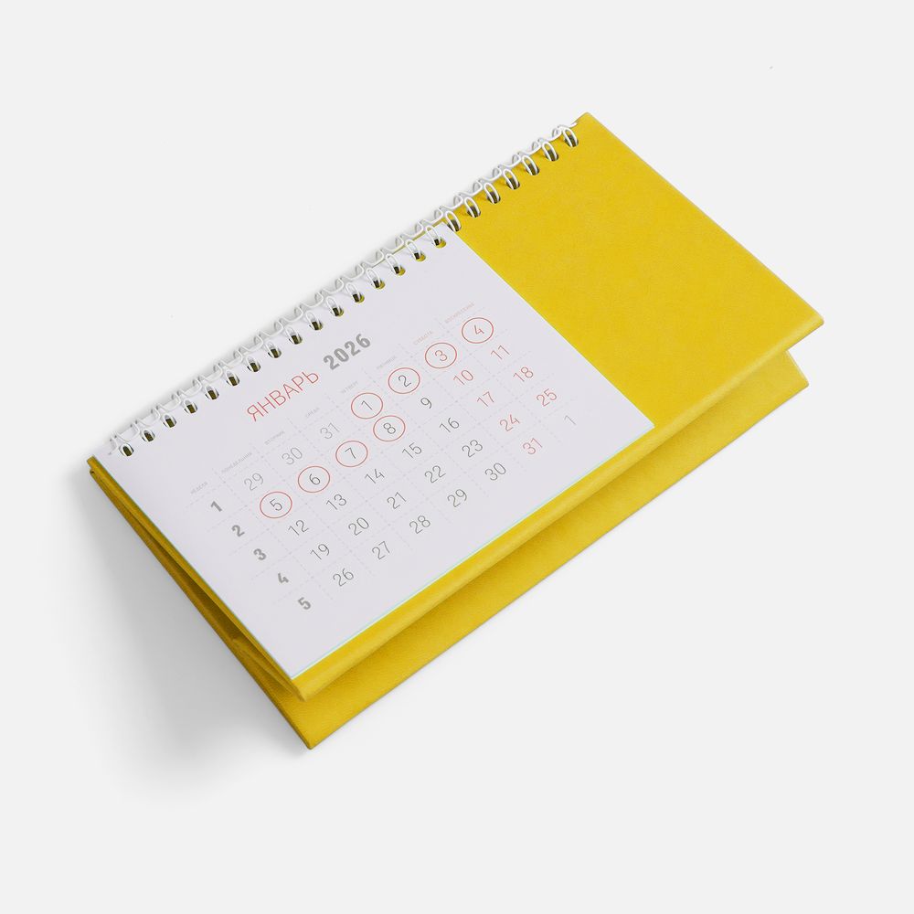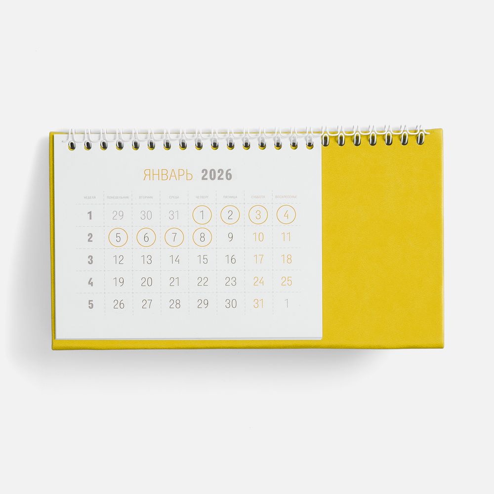 Настольный, перекидной календарь-домик выполнен из материала Latte, желтый KK.