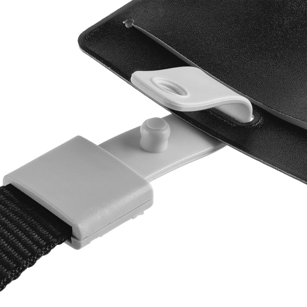 Карман для пропуска крепится к ленте с помощью пластиковой клипсы.