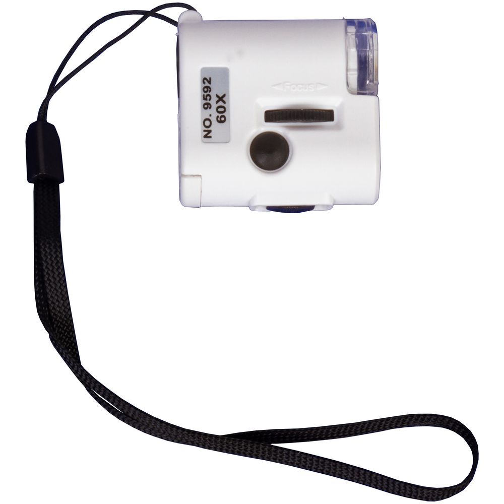 Микроскоп может применяться как для проверки подлинности денежных знаков, так и для обычных визуальных наблюдений. Увеличение оптики составляет 60 крат. Интенсивность работы подсветки можно регулировать переключателем на корпусе. Настройка резкости выполняется с помощью удобного крупного колеса грубой фокусировки.В комплект входит чехол из полиэстера.