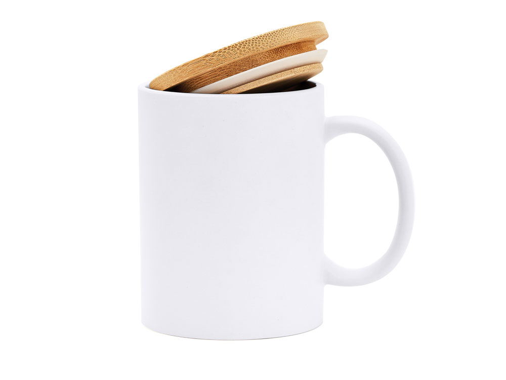 Керамическая кружка Eco line объемом 370 мл. Дизайн с матовой отделкой и бамбуковой крышкой. Это идеальная кружка для подарка.