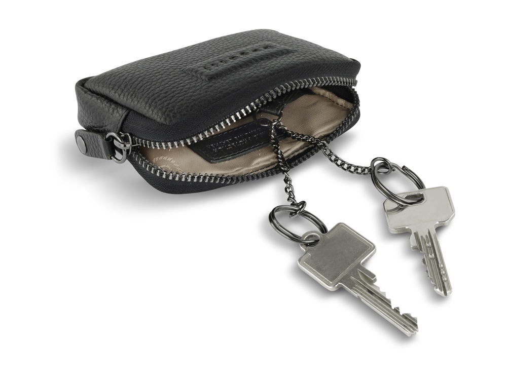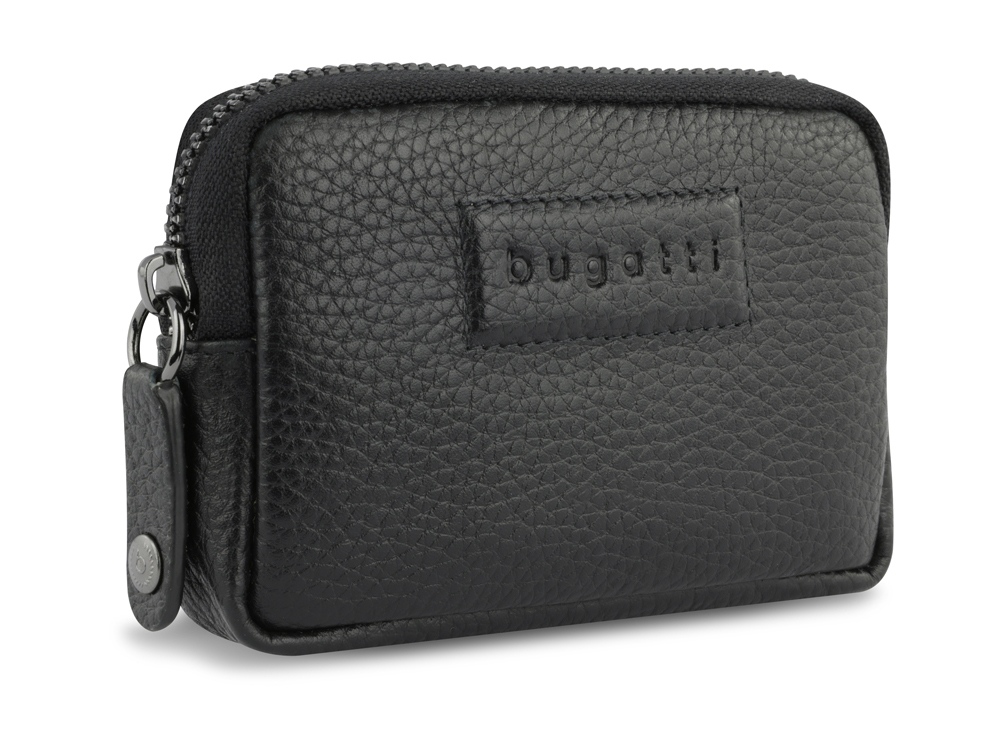 Ключница BUGATTI Elsa, с защитой данных RFID, чёрная, воловья кожа/полиэстер, 11х2х7 см
