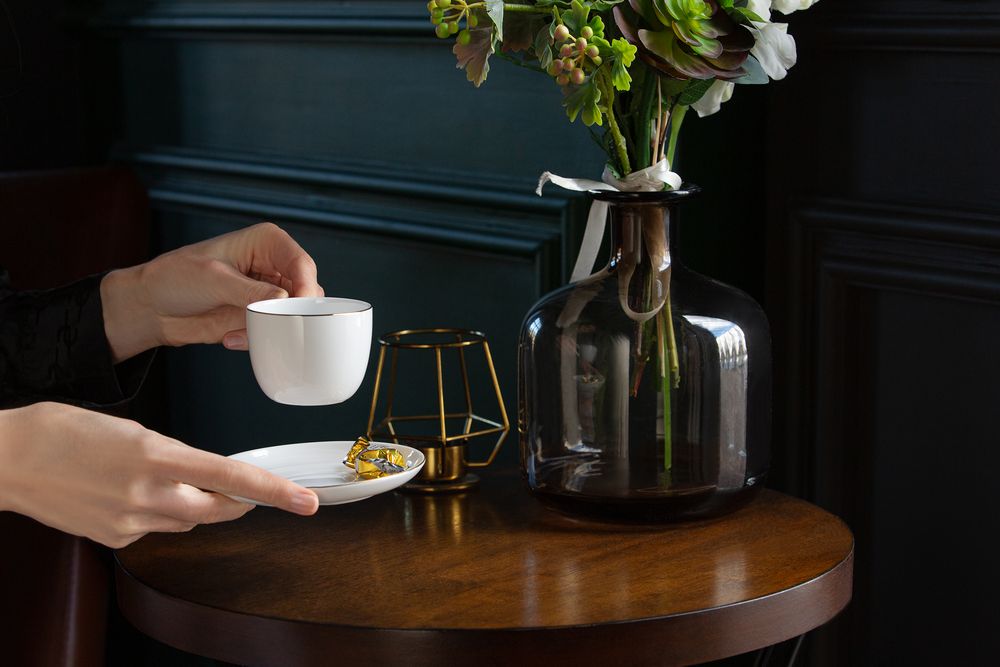 С кофейной парой Mansion Select легко почувствовать себя особенным. Кофейная пара обращает на себя внимание тонкой отводкой с металлическим блеском по краю предметов и изящной формой, а подарочная упаковка делает этот комплект роскошным подарком.