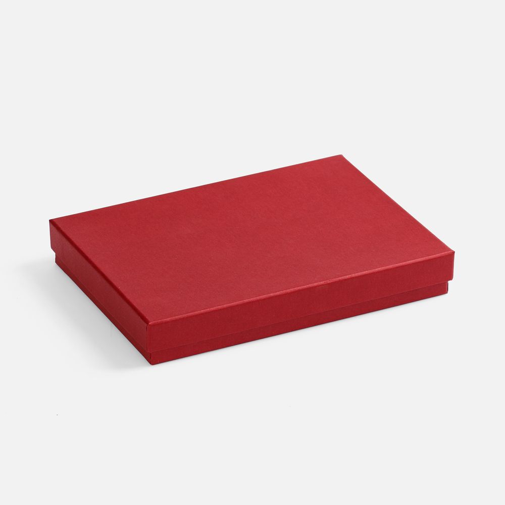 Коробка изготовлена из переплетного картона, кашированного гладкой дизайнерской бумагой Malmero.