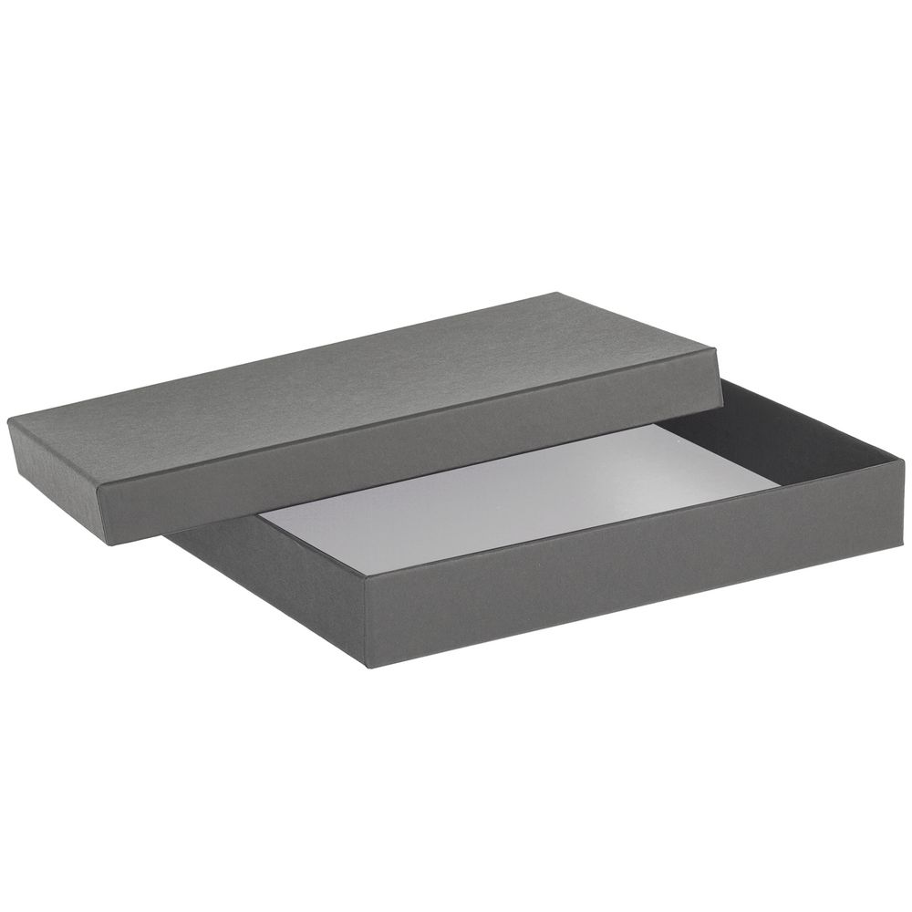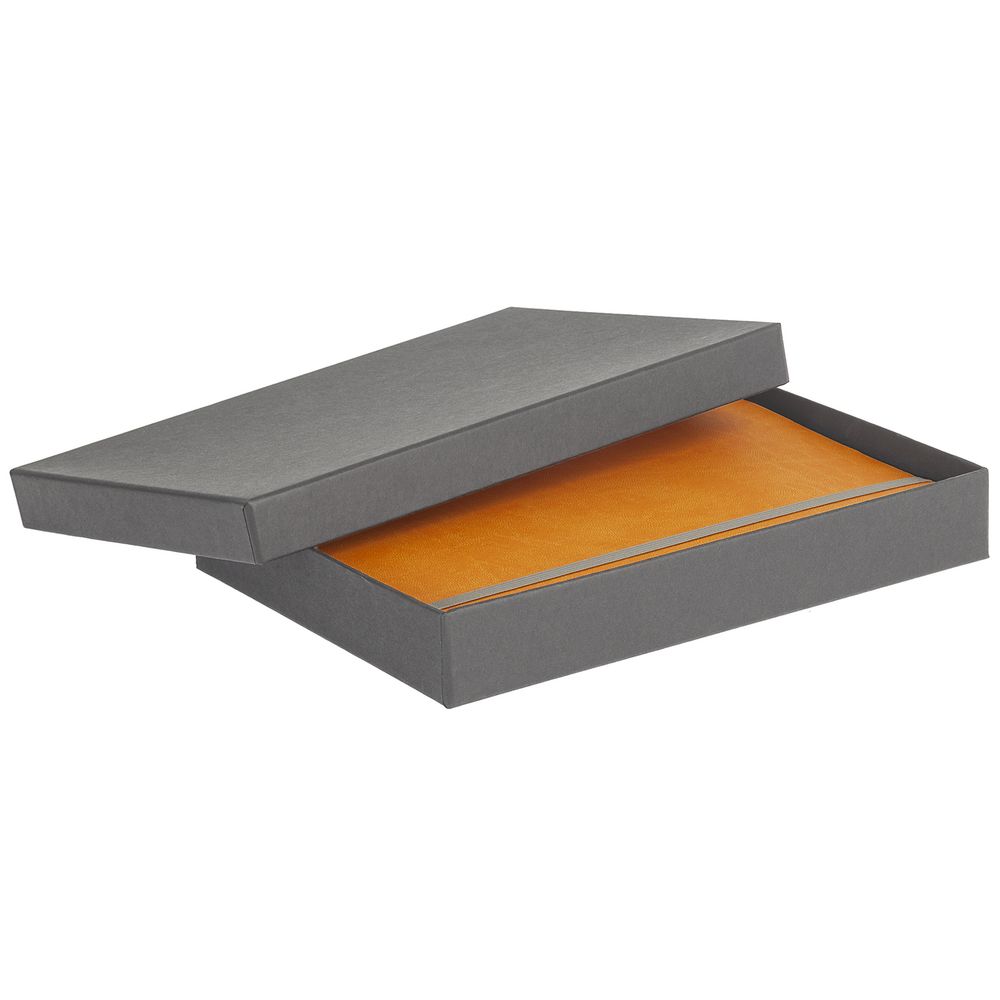 Коробка изготовлена из переплетного картона, кашированного гладкой дизайнерской бумагой Malmero.