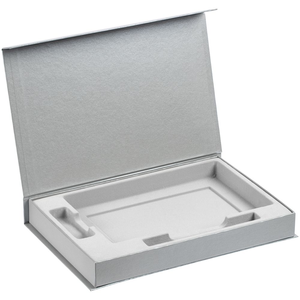 Коробка Silk с ложементом под ежедневник 13×21 см, флешку и ручку, ver. 2, серая