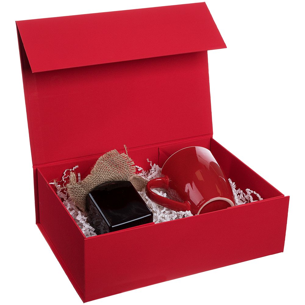 Коробка из переплетного картона, кашированного тисненой тонированной в массе бумагой, с крышкой на магните.