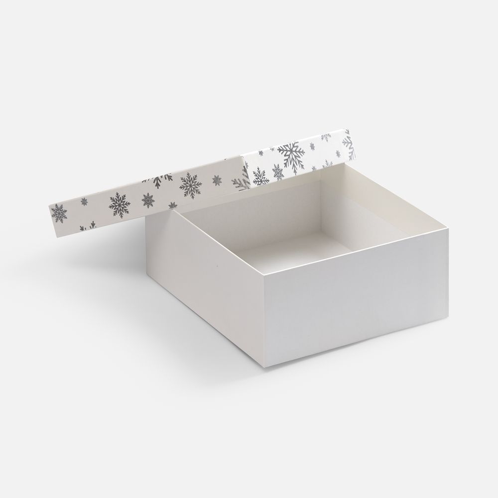 Коробка выполнена из переплетного картона толщиной 1,5 мм, кашированного бумагой TPG с тиснением серебристой фольгой.