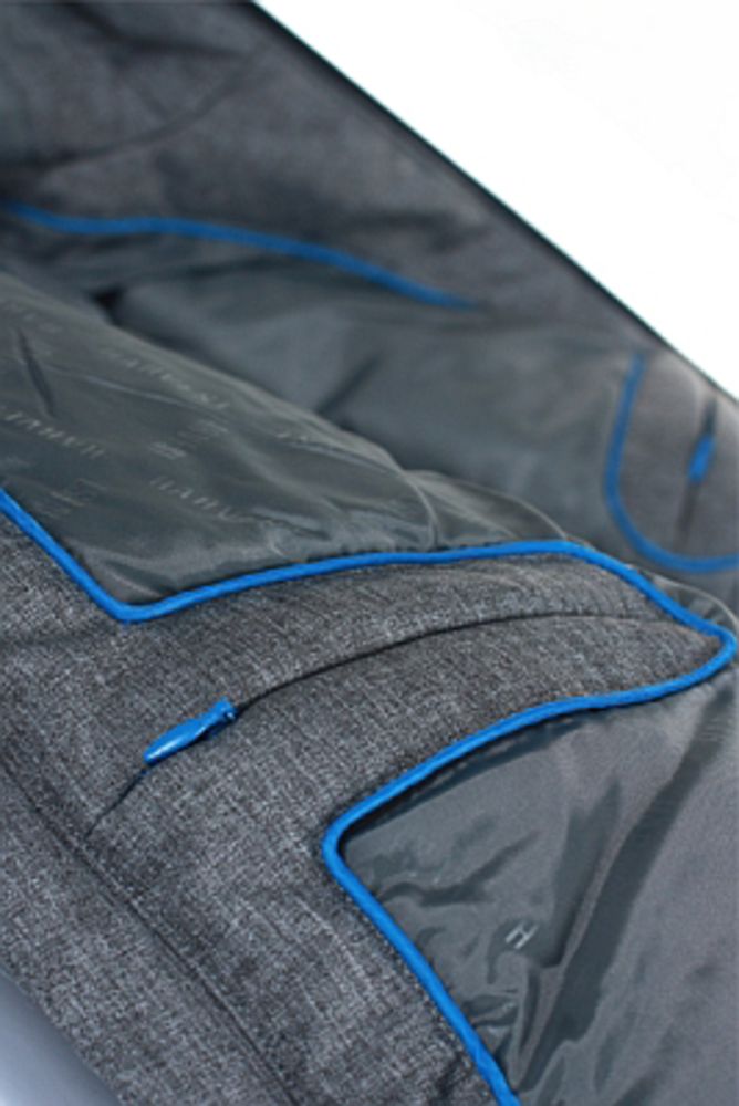 Отделка подкладки контрастным шнуром, контрастный подклад рукавов, эластичный шнур по низу изделия и в капюшоне.