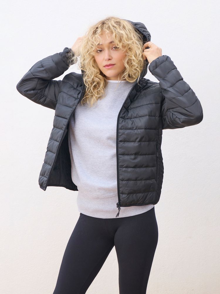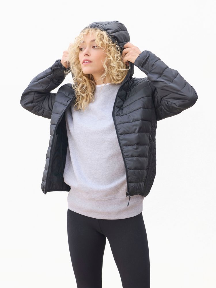 Женская куртка с капюшоном комфортной посадки.