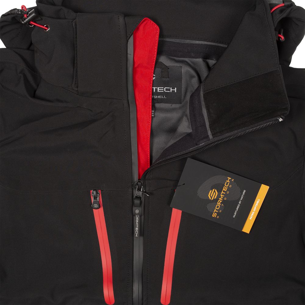 Куртка софтшелл мужская Patrol, черная с красным