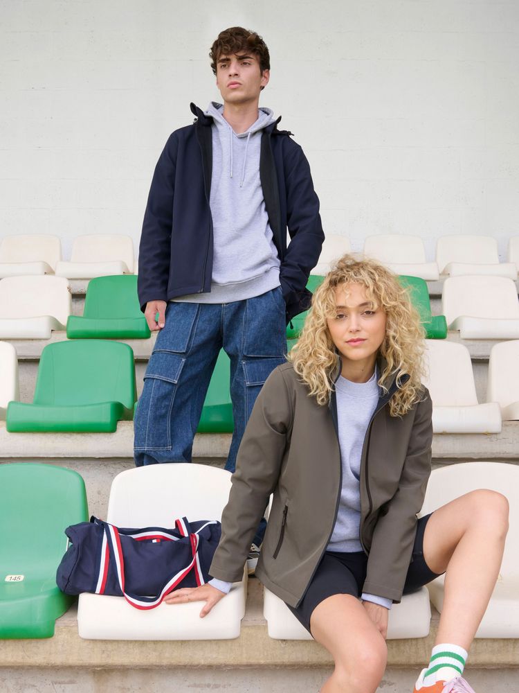 Мужская куртка софтшелл на молнии и с капюшоном.