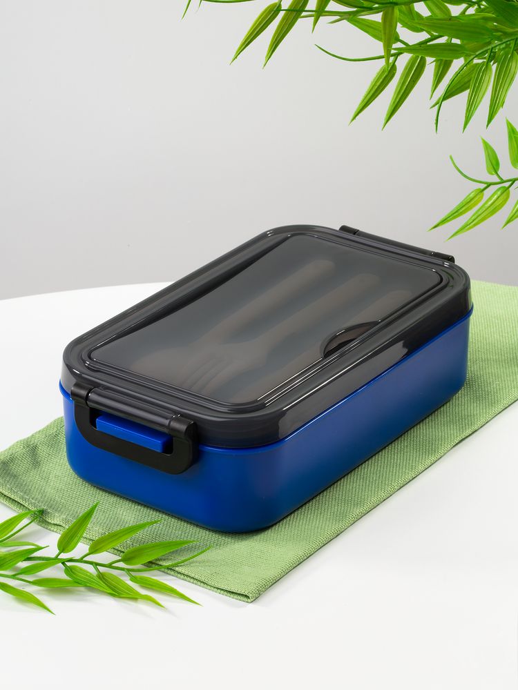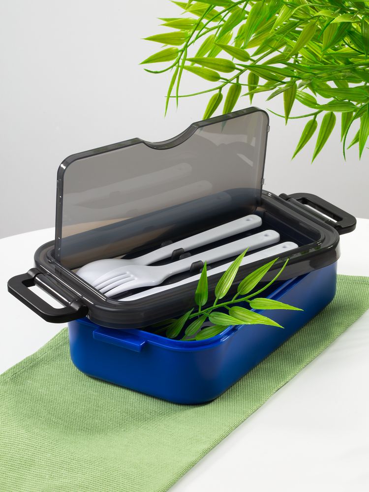 Удобная конструкция с крышкой на защелках обеспечивает надежную фиксацию. Специальное отделение под крышкой позволяет хранить столовые приборы, освобождая дополнительное пространство в сумке.