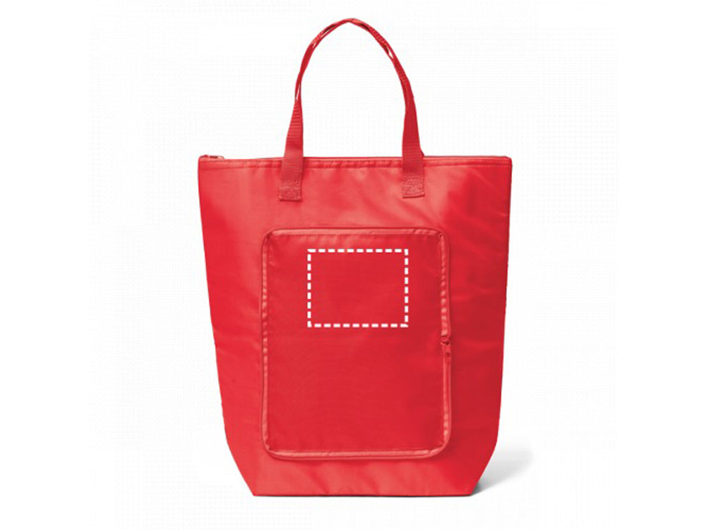 Складная термоизолирующая сумка из 210D с ручками длинной 60 cм. Емкость до 16 л. Вид нанесения, рекомендуемый поставщиком: трансфер
