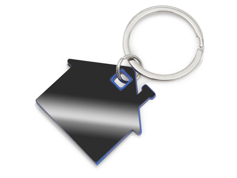 Металлический брелок с пластиковой цветной вставкой SteelPop House, серебристый с синим