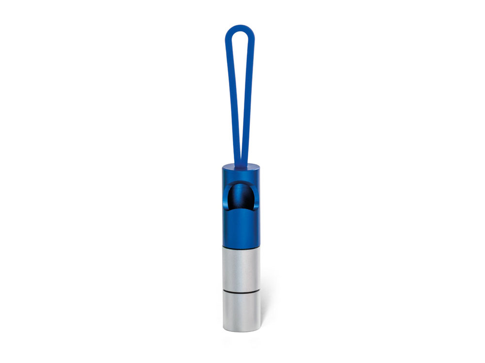 MIRA. Фонарь из алюминия, Королевский синий. Фонарь из алюминия с 1 LED, открывалкой и силиконовой петлей. Данный фонарь поставляется с 3 батарейками LR44. Вид нанесения, рекомендуемый поставщиком: гравировка, тампопечать