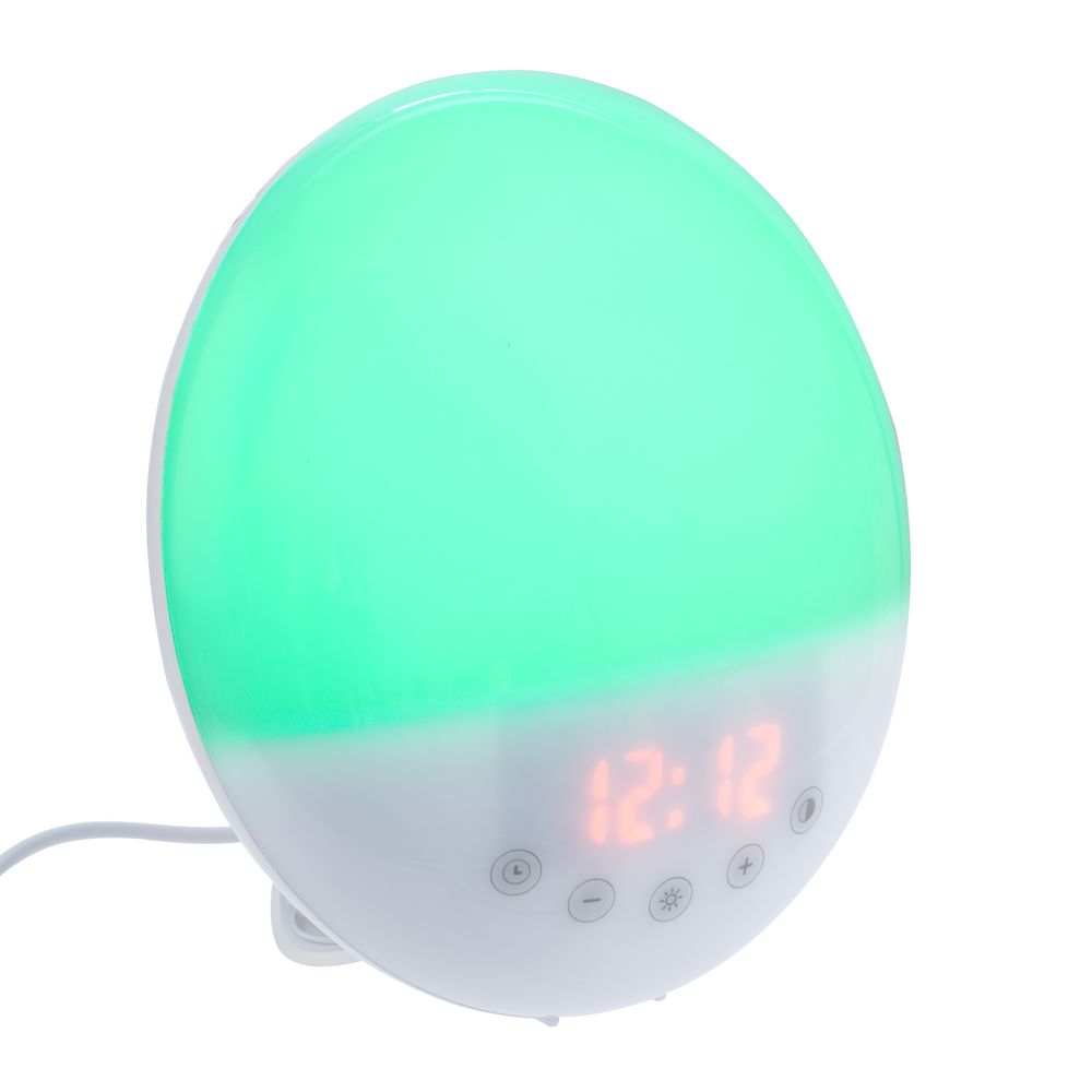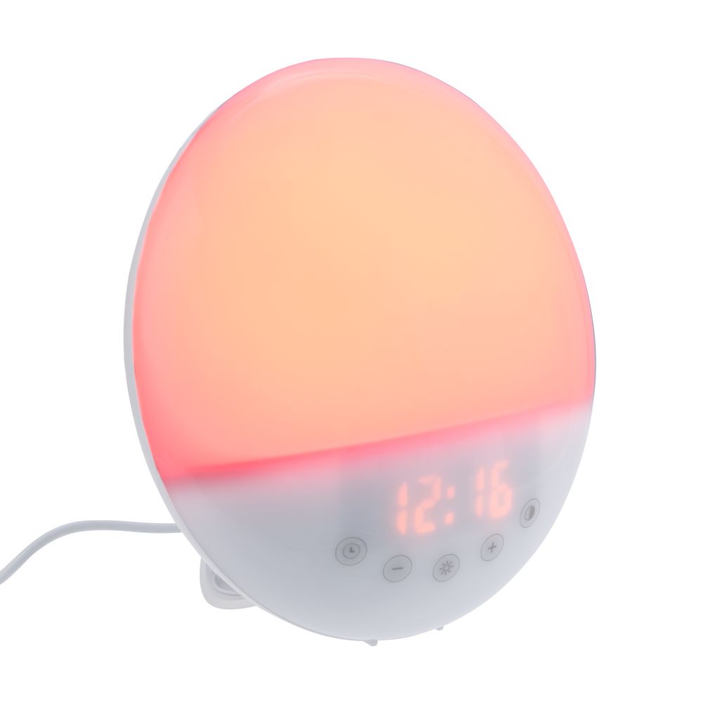 За 30 минут до звонка будильника активируется подсветка и ее яркость постепенно увеличивается — свет медленно выводит организм из фазы глубокого сна и вы будто встаете «с первыми лучами солнца». Эффект мягкого пробуждения можно дополнить натуральными звуками природы.