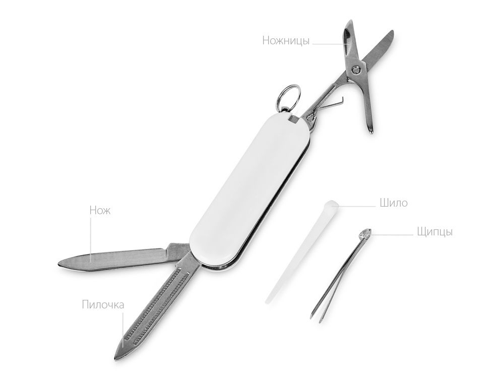 Складной нож в пластиковом глянцевом корпусе. Можно удобно прикрепить на ключницу. В комплект входят: