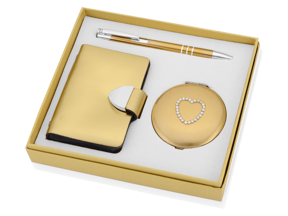 Набор Чувства: шариковая ручка, зеркало, визитница, золотистый (Р)