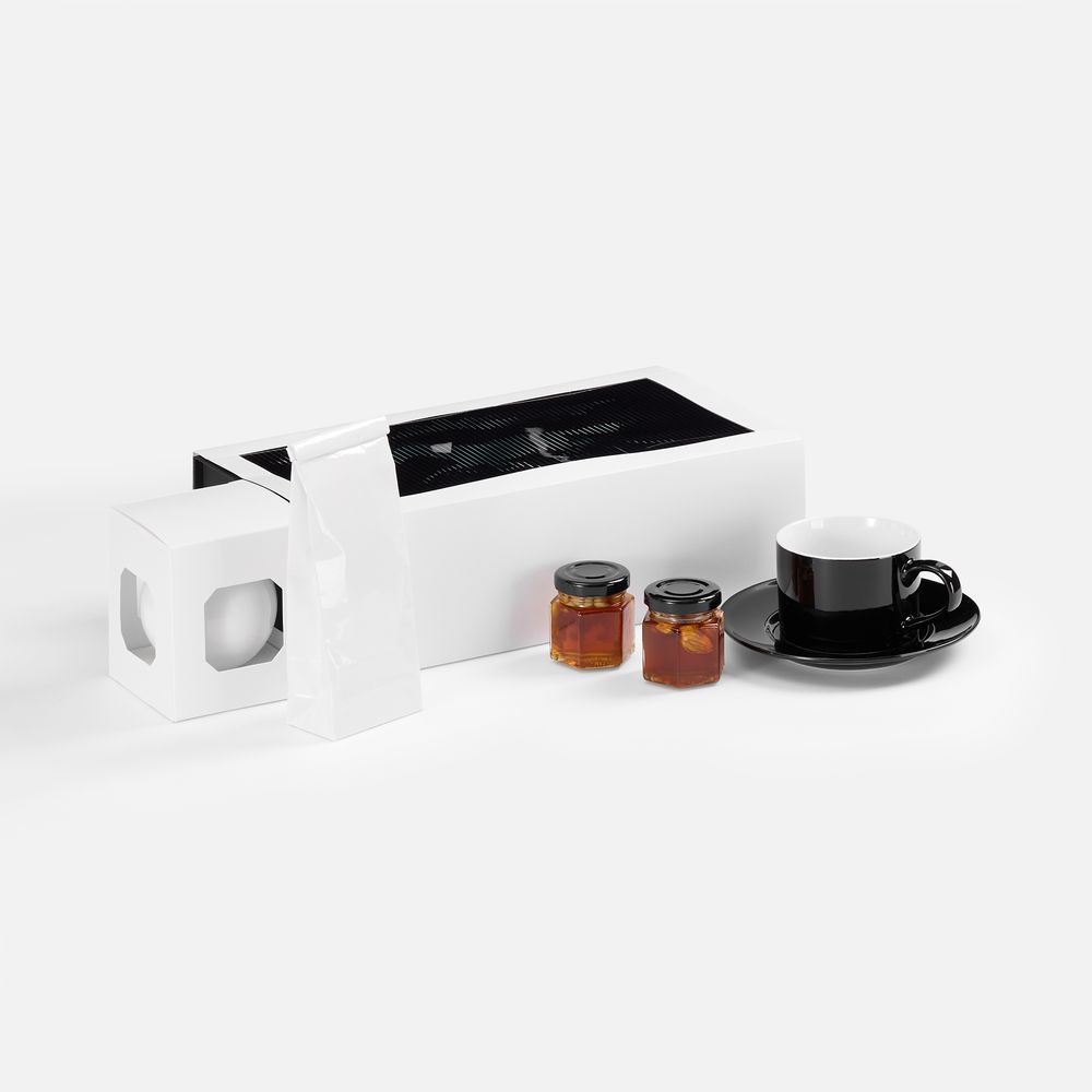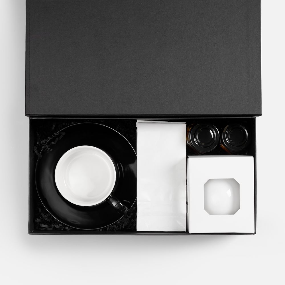 Черно‑белая палитра делает набор универсальным: он подходит для любого получателя, легко адаптируется под корпоративный стиль и принимает логотип как естественный элемент композиции.