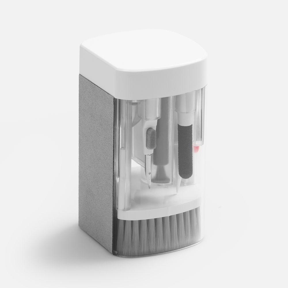 - В комплекте: большая щетка, салфетка для ухода за дисплеем, контейнер для жидкости, пластиковый пинцет, щетка с жесткой щетиной, щетка с мягкой щетиной, чистящее перо со щеткой для наушников, насадка для чистки кейса от наушников, ершик для чистки кейса от наушников, щетка с короткой щетиной, щетка с наклонной щетиной, двусторонняя насадка для чистки разъемов зарядки, двусторонняя насадка для чистки камеры, инструмент для продувки, дуговой пинцет, ключ для отсека SIM-карты, инструмент для извлечения поврежденных ключей