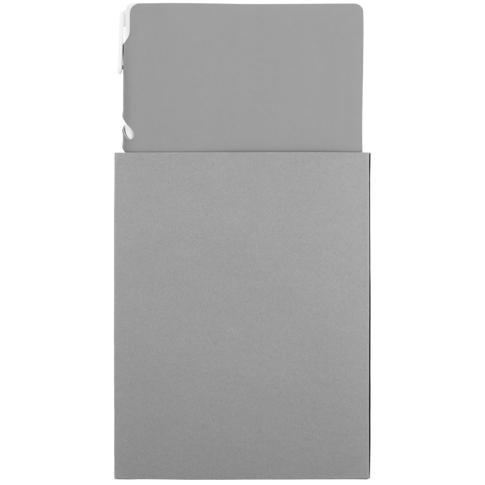 Удобный ежедневник с гибкой обложкой и местом под ручку в корешке, миниатюрная ручка из переработанного пластика и компактная самосборная коробка — простые составляющие полезного делового набора.