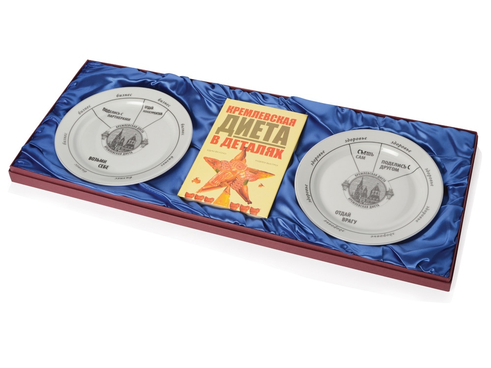 В набор входят: книга Кремлевская диета в деталях, две тарелки.