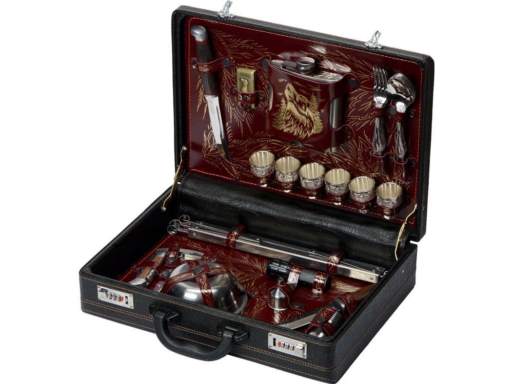 Кейс из сплит-кожи, с повышенной износостойкостью, внутренняя отделка натуральная кожа с художественным выжиганием.
