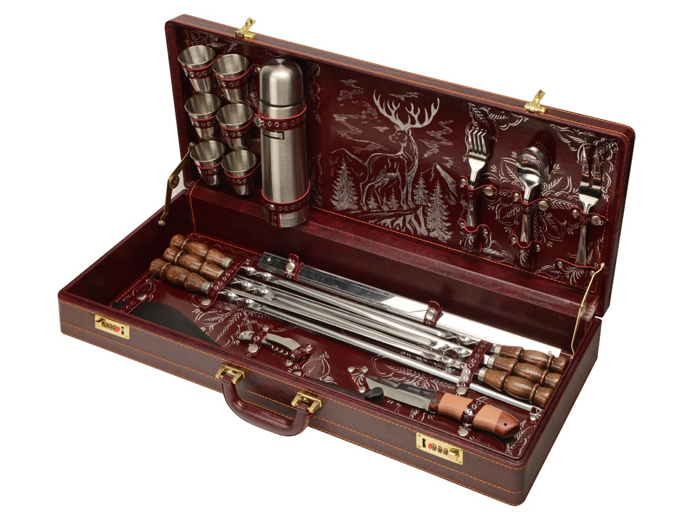 Кейс из сплит-кожи, с повышенной износостойкостью, внутренняя отделка натуральная кожа с художественным выжиганием.
