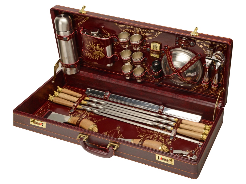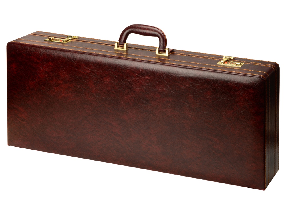 Кейс из сплит-кожи, с повышенной износостойкостью, внутренняя отделка натуральная кожа с художественным выжиганием.