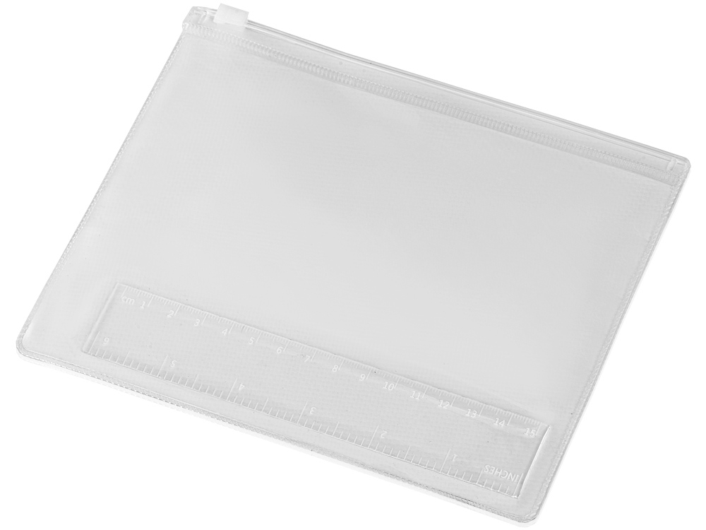 В канцелярский набор входит прозрачный пенал из ПВХ с zip-замком и линейка. Создайте идеальный подарок дополнив его блокнотом формата А6 и ручкой.