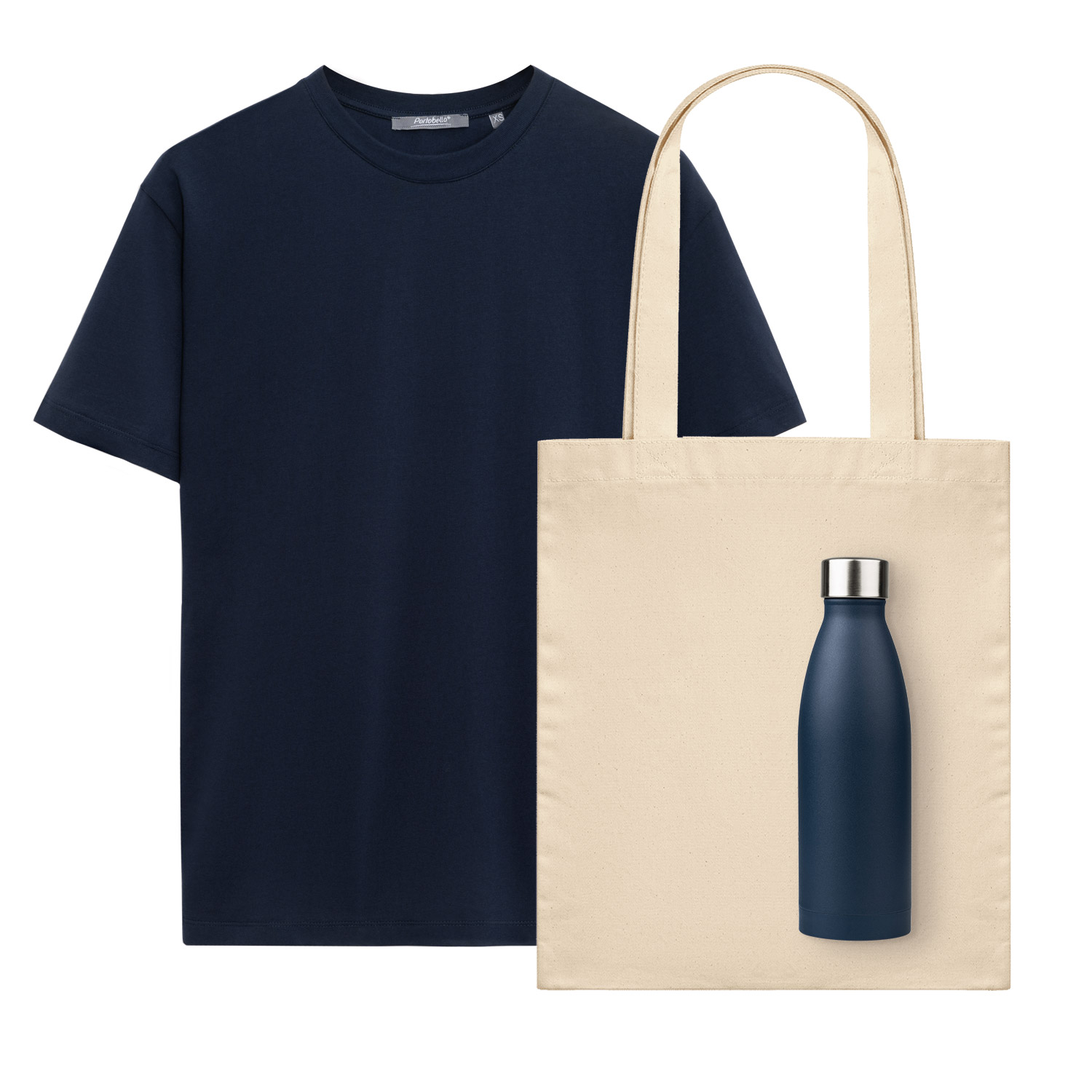 Набор с одеждой KRIS (футболка, термобутылка, шоппер), синий, XL