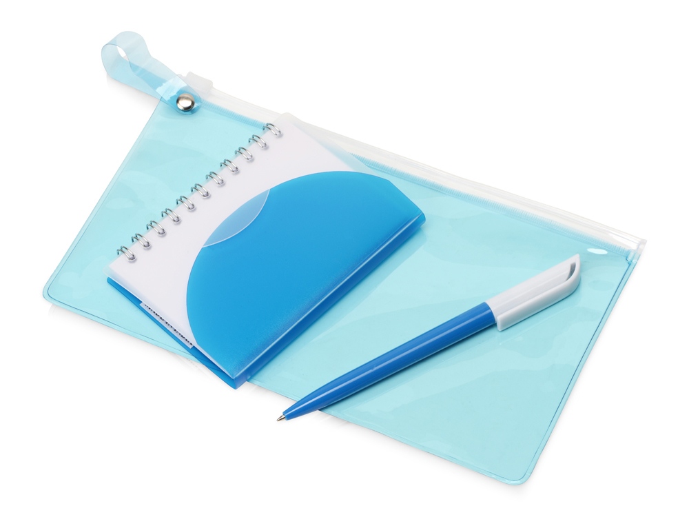 Канцелярский набор Smart mini. Набор состоит из компактного блокнота А7 на 60 листов и пластиковой ручки с интересным сочетанием двух цветов. Все упаковано в яркий пенал с zip-замком.