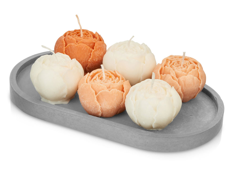 Набор из шести ароматических свечей в форме пионов поможет наполнить ваш дом нежностью и уютом.