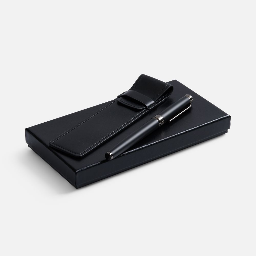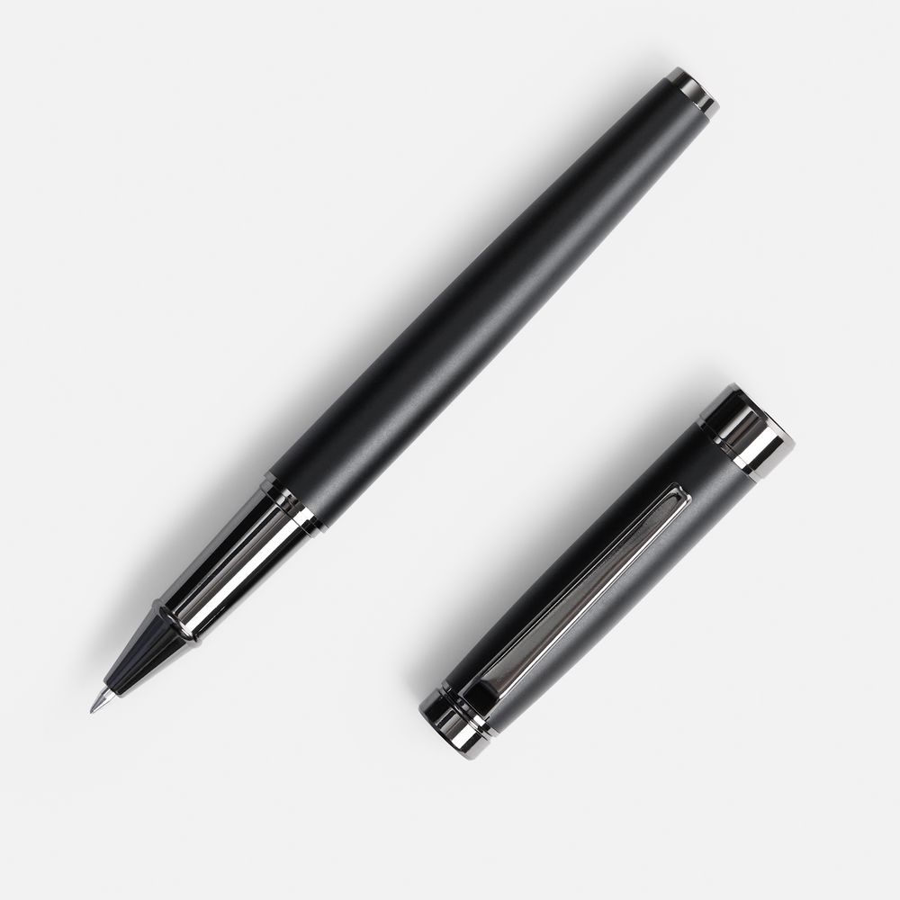 Роллер в матовом корпусе с глянцевыми деталями в оттенке gun metal выглядит одновременно сдержанно и презентабельно, а чехол из искусственной кожи не только защищает ручку от пыли и царапин, но и дополнительно подчеркивает статус владельца.