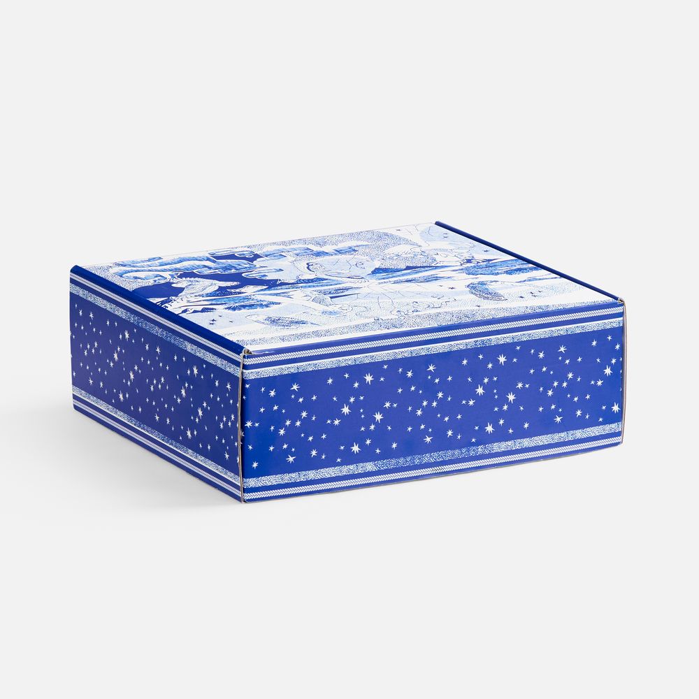 Изящная гравировка с парящими совами на кружке дополняет композицию, а лента елочного шара украшена небесным орнаментом — созвездиями и всполохами сияния. Так магии Севера становится еще больше, а весь набор вызывает приятный трепет. Тонкие линии, будто выведенные вручную, придают ему графичную изысканность.