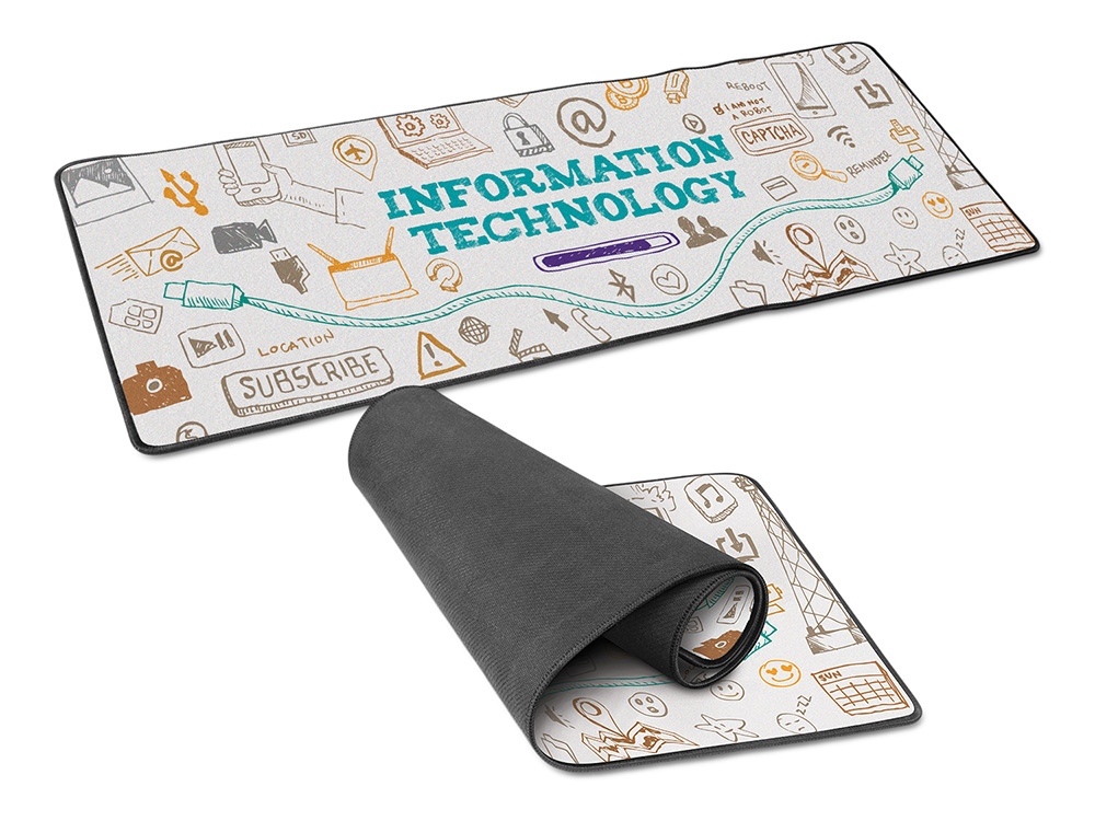 Большой коврик для мышки и клавиатуры, который идеально размещается на столе. Практичный способ брендировать рабочее место и уберечь его от микроцарапин. Гладкое верхне покрытие из микроволокна обеспечивает плавное движение мышки. Резиновая основа и толщина 3 мм не даёт коврику скользить по поверхности стола, дополнительно защищая его от царапин. Изображение наносится на тканевую поверхность, принт размещается в край.