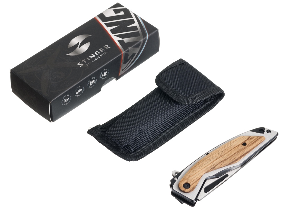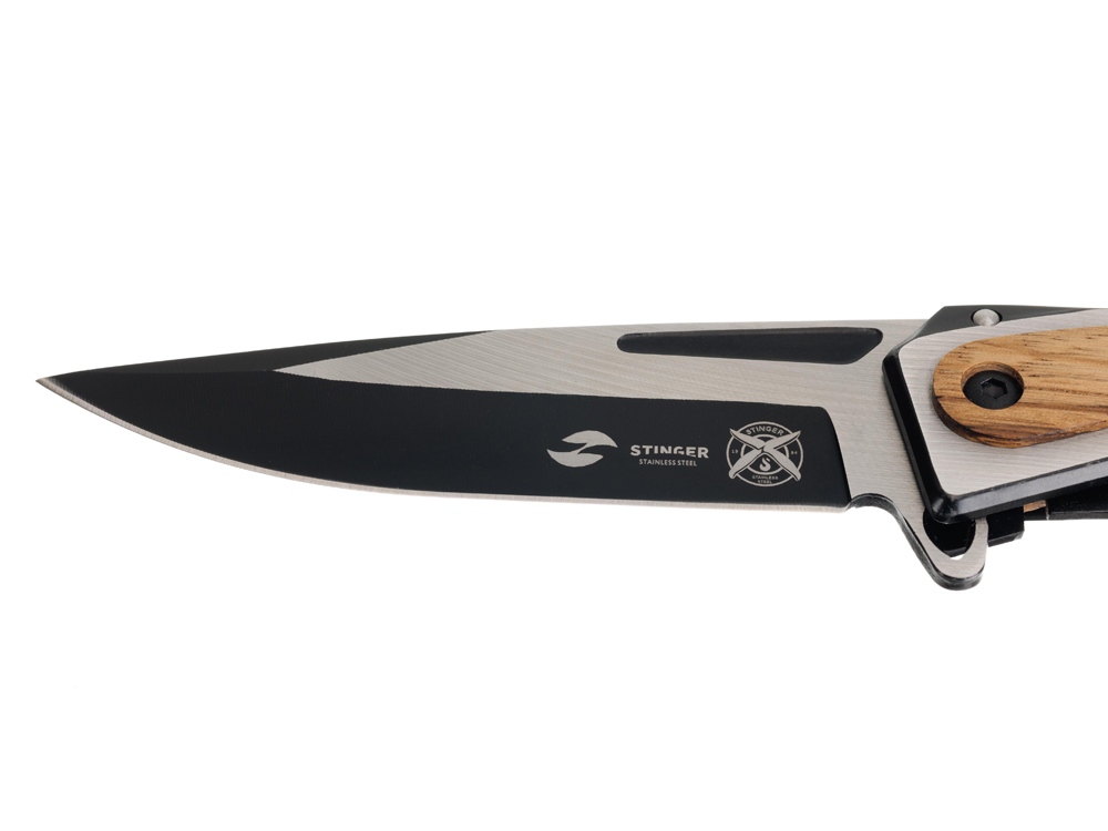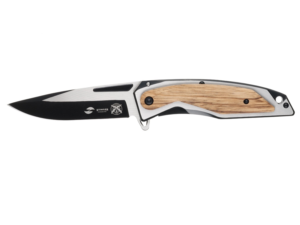 Нож складной Stinger, 120 мм, (черный/серебристый), материал рукояти: нержавеющая сталь/дерево